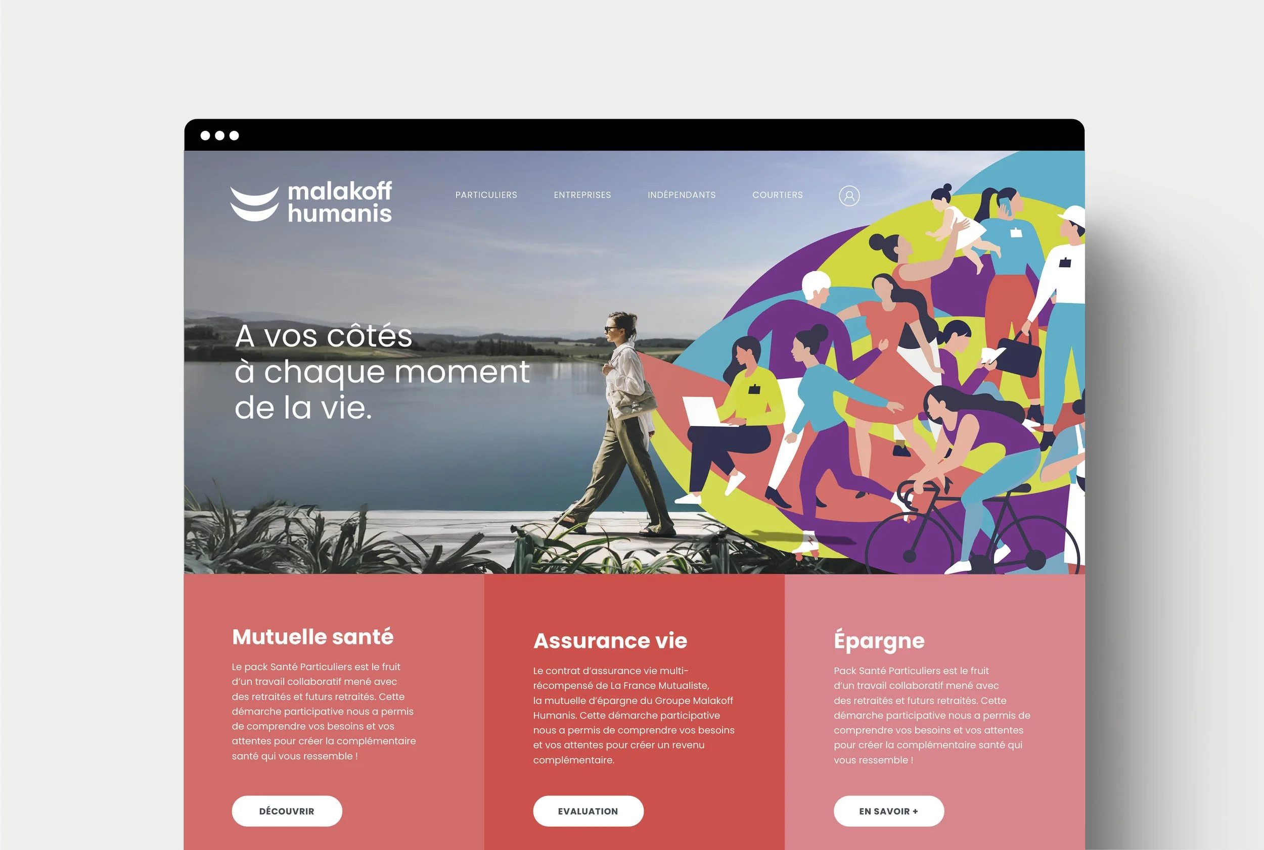 Nouveau territoire graphique pour Malakoff Humanis et refonte complète de son identité : spécialiste dans l’accompagnement santé, épargne et retraite pour particuliers et professionnels. Le développement graphique est axé autour de tous les moments de la vie, en apportant dynamisme et mouvement, comme un symbole d’échange et de transmission.